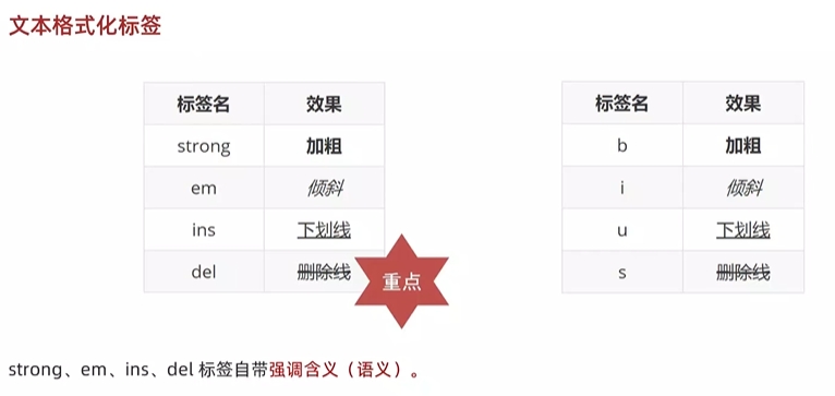 strong-加粗; em-倾斜;ins-下划线;del-删除线; 工作中推荐